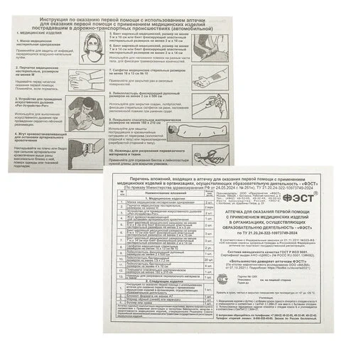 Аптечка офисная Фэст коллективная, до 100 человек, № 3.3