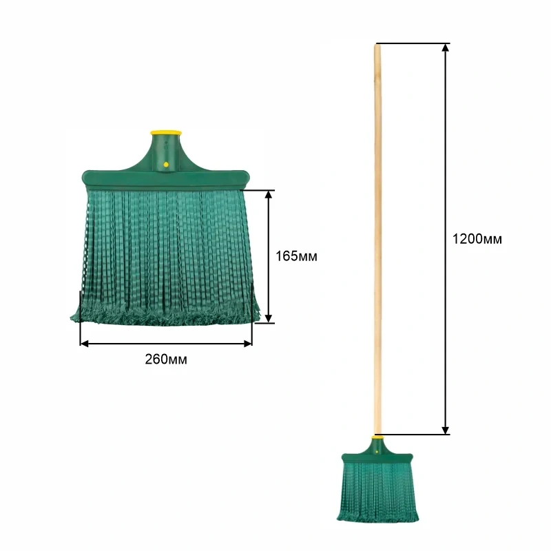 Инструмент долговечный и прочный благодаря полипропилену, из которого изготовлена щетина. Она распушена к низу, что позволит собрать даже самые мелкие частицы пыли и мусора. Деревянный черенок с пластиковой еврорезьбой станет универсальным дополнением к щетине и прослужит долгое время даже при каждодневном использовании.