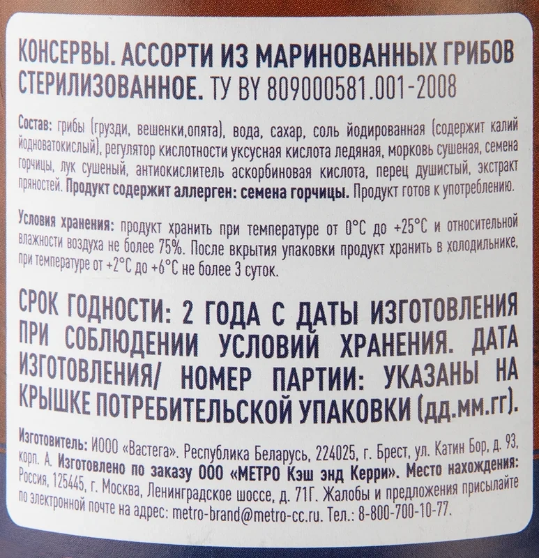 | Способ обработки | маринованные |