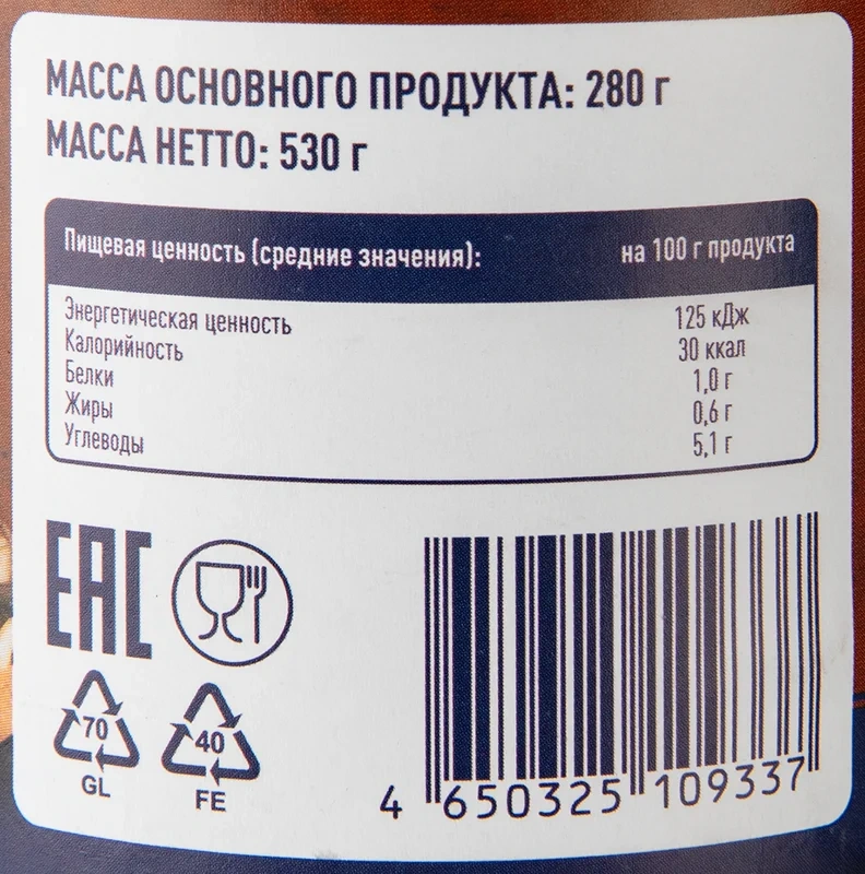 | Энергетическая ценность, ккал/100 г | 30 |
