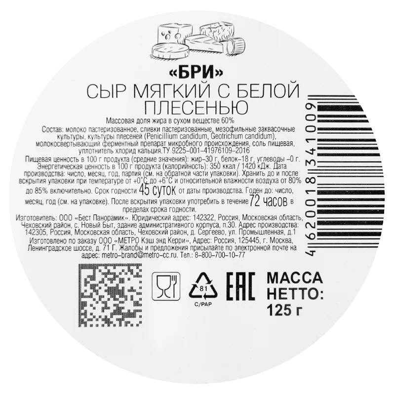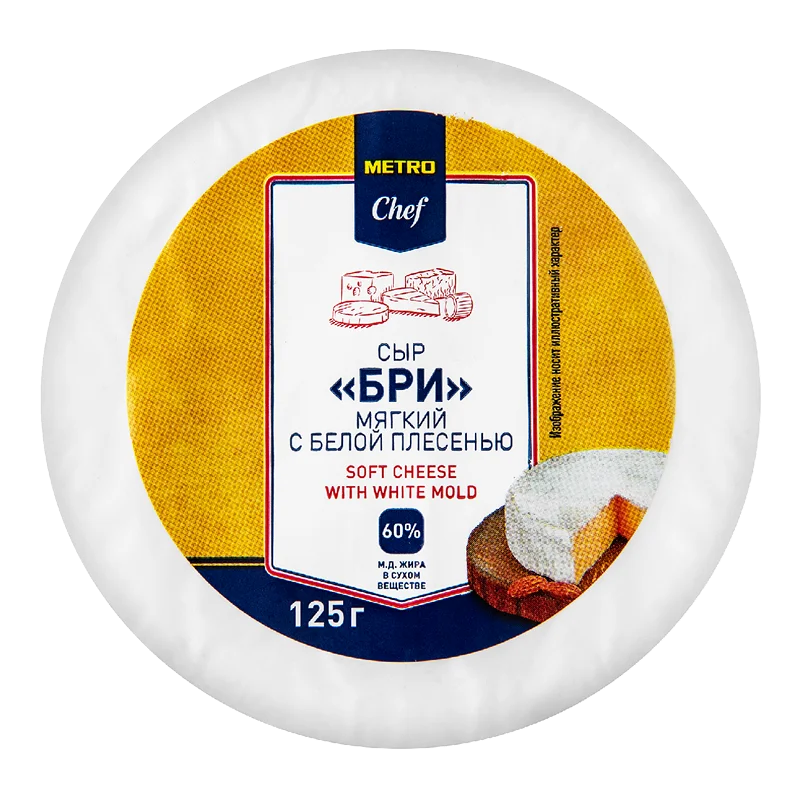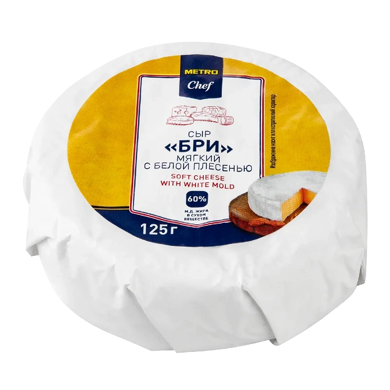 Бри – мягкий сыр с белой плесенью. Бри производится по классическому французскому рецепту. Молоко предварительно не стабилизируется, что позволяет создать именно тот продукт, который завоевал славу по всему миру. Форма выпуска: круг 20 см – вес 1 кг. Универсальное правило для употребления мягких сыров – сыр должен согреться до комнатной температуры – это делает его мягким и раскрывает ароматику. Из холодильника сыр лучше достать за 30-40 минут до подачи. Вкус сыра прекрасно дополнят сладкие фрукты (груша, инжир, виноград), ягоды (клубника, малина, голубика, черника), также рекомендуются к подаче оливки и вяленые томаты. Отлично сочетается с мягкими красными и насыщенными белыми винами.