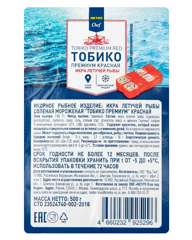 METRO Chef Икра тобико премиум красная замороженная, 500г