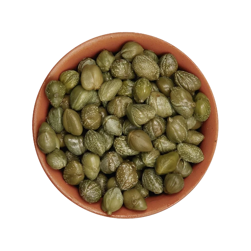 Каперсы - это бутончики цветов каперсника колючего. Чтобы не пропустить самые маленькие бутоны, считающиеся элитными, итальянцы собирают каперсы вручную. Консервированные каперсы прекрасно сочетаются с холодными и горячими закусками, вторыми блюдами, солянками, их также добавляют в разнообразные соусы.