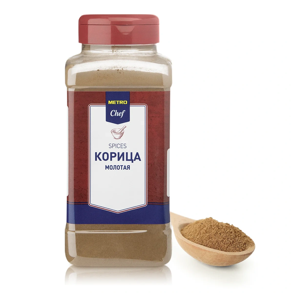 Корица METRO Chef молотая, 400 г – одна из самых популярных специй, которая представляет собой высушенную кору вечнозеленого дерева семейства Лавровых. Данный продукт богат различными витаминами и элементами, среди которых – калий, цинк и железо. Кроме того, в корице есть эфирные масла, обладающие антимикробными свойствами. Она улучшает перистальтику кишечника и стимулирует пищеварительные процессы. В кулинарии молотую корицу чаще всего используют для приготовления разнообразных десертов, пирогов с ягодной и фруктовой начинкой, сдобной выпечки. В процессе нагревания аромат этой специи раскрывается сильнее. Кроме того, молотой корицей можно посыпать молочные коктейли, взбитые сливки и мороженое.