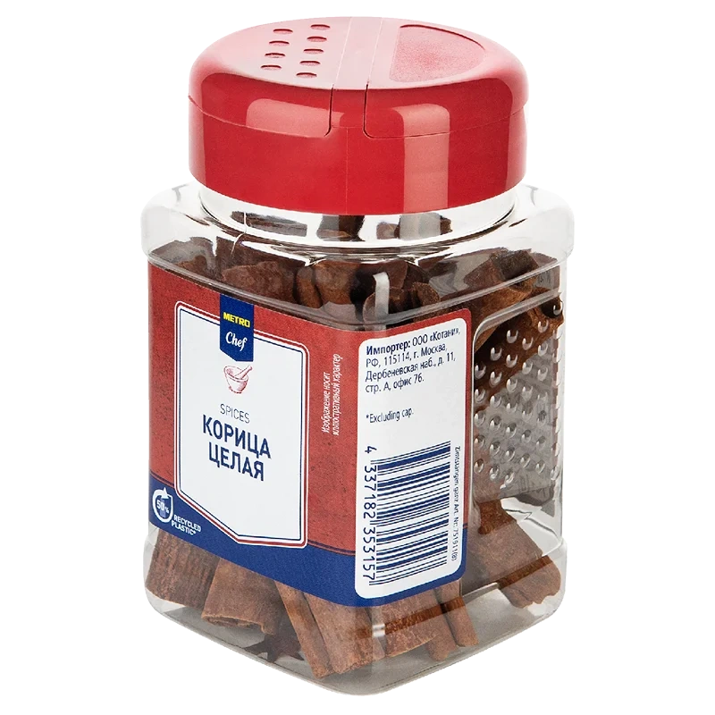 Корица METRO Chef целая, 70 г представляет собой классическую пряность с характерным запахом, получаемая из коры побегов коричного дерева. Она обладает ни с чем не сравнимым уникальным ароматом, который способен создать праздничную атмосферу в доме и наполнить его уютом. Корицу добавляют в разнообразную выпечку: при приготовлении сдобного теста, в оладьи, пироги и кексы, а также в сладкие десерты, согревающие и шоколадные напитки. Зачастую она присутствует в рецептах муссов, суфле, запеканок и пудингов. Пряность гармонично сочетается с разнообразными фруктами, такими как айва и груша. Например, популярное среди взрослых и детей лакомство — запеченные с медом яблоки — обязательно присыпаются корицей, придающей им восхитительный аромат. В блюдах азиатской кухни ее добавляют к свинине, баранине и индейке, а также она входит в состав многих маринадов. Приправа отличается антиоксидантными и антимикробными свойствами, снижает холестерин в крови и усиливает вкусовые ощущения при употреблении блюда.