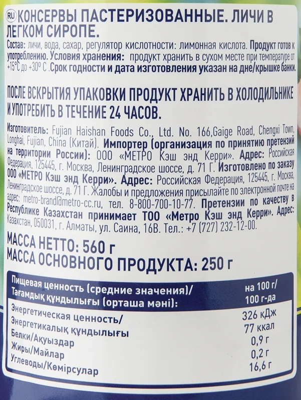 METRO Chef Личи консервированные в легком сиропе, 560г