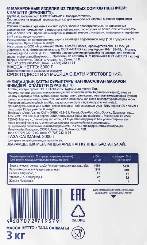| Тип | макаронные изделия |