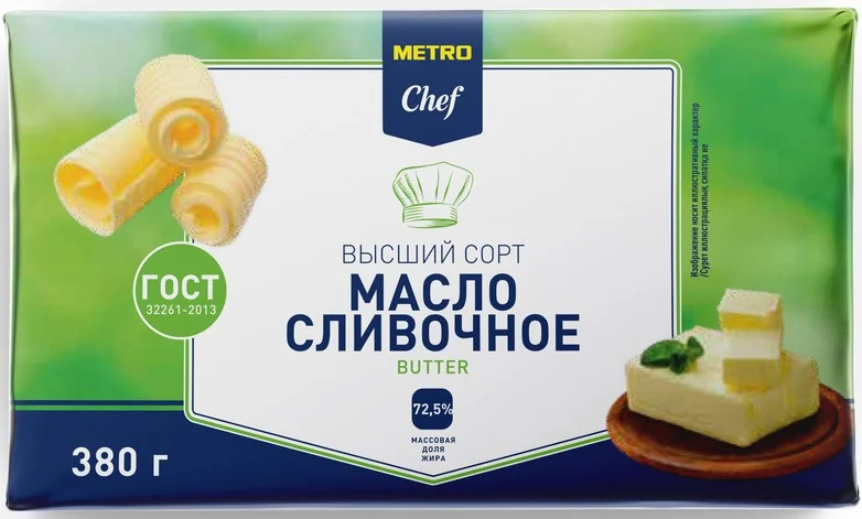 Масло сливочное Metro Chef Крестьянское ГОСТ, 72.5%, 380г
