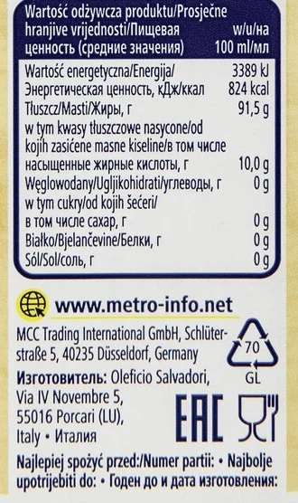 METRO Chef Масло виноградных косточек, 500мл отлично подходит для жарки. У него высокая температура дымления. Чистый и легкий вкус масла также подойдет для салатов. На основе этого масла получается утонченный майонез. METRO Chef Масло виноградных косточек, 500мл отвечает и удовлетворяет самые разнообразные требования потребителей, благодаря последовательному вкусу и аромату для усиления вкуса ваших любимых блюд.