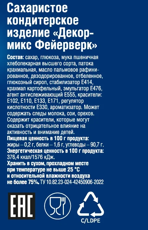 Сахар, сухое цельное молоко, масло какао, какао тертое, эмульгатор: соевый лецитин, эмульгатор Е476, ароматизатор: ванилин.