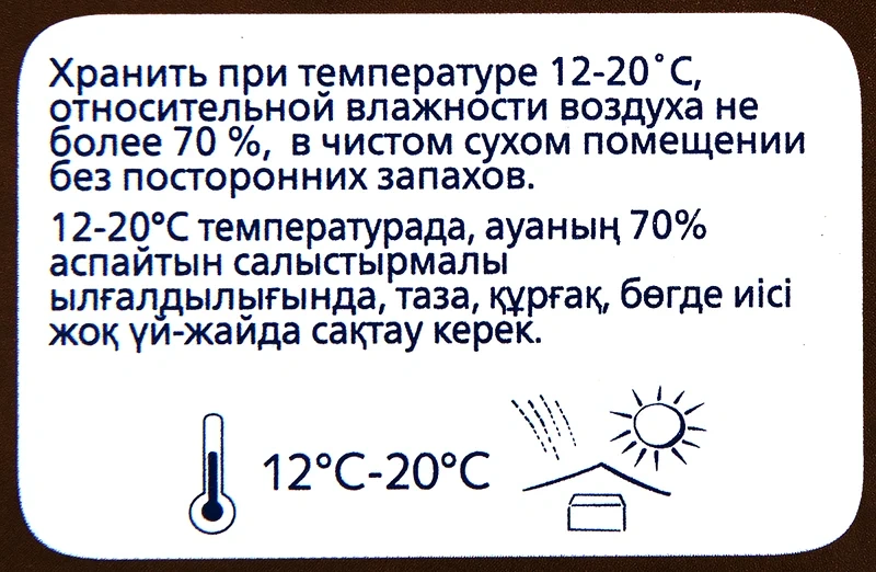 | Рекомендуемая температура хранения, C | от +12 до +20 |
