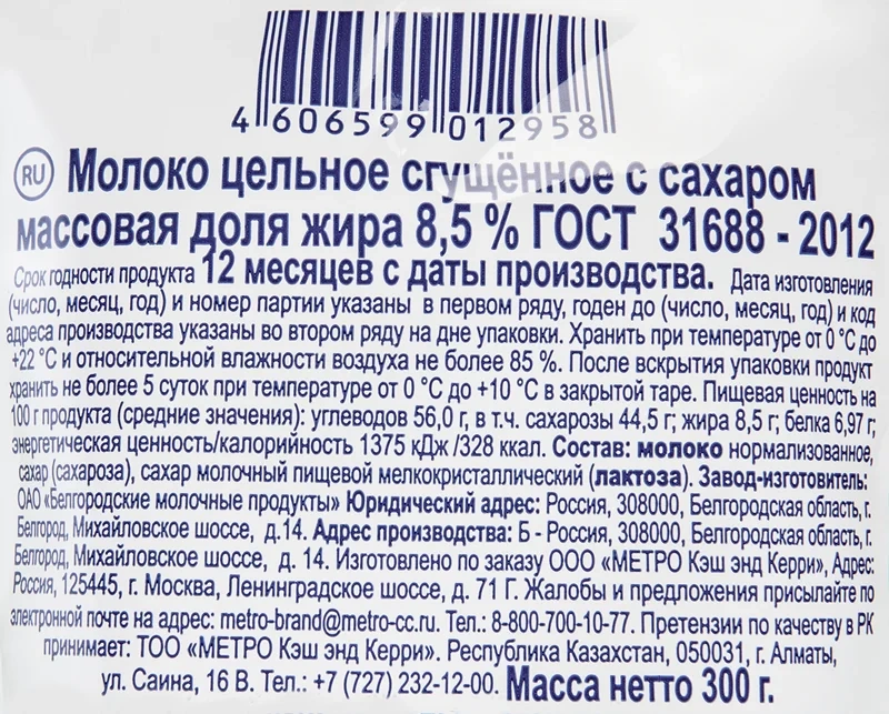 Молоко сгущенное Metro Chef 8,5% дой-пак, 300г БЗМЖ изготовлено по ГОСТ на основе нормализованного молока и сахара. Сладкий продукт обладает приятным молочным оттенком, сбалансированным вкусом и густой однородной консистенцией. Лакомство является главным ингредиентом многих десертов, кремов, выпечки. Его добавляют в кофе, подают к хлебу, оладьям, блинчикам, используют в качестве топинга для мороженого. Продукт содержит молочные белки, легкоусвояемые жиры, широкий спектр витаминов и минералов, необходимых для правильного обмена веществ. Он хорошо насыщает, восстанавливает силы и повышает устойчивость к стрессу. Упаковка обеспечивает удобное хранение лакомства, позволяет брать его в дорогу или на пикник.