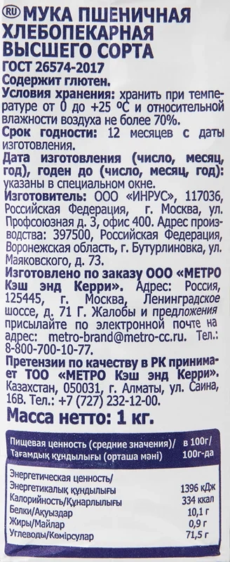 METRO Chef Мука пшеничная хлебопекарная высший сорт, 1кг