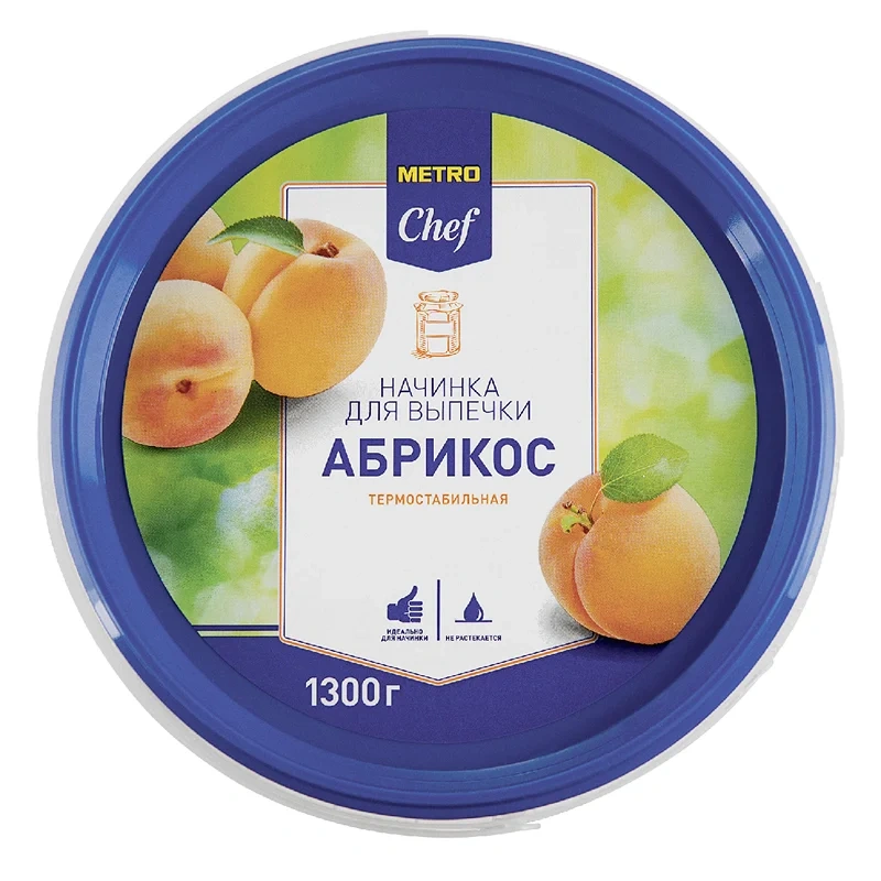 Начинка для выпечки METRO Chef Абрикос широко применяется в хлебопекарном производстве, на предприятиях общественного питания и для создания домашних выпечек. Начинка хорошо сочетается с любыми видами теста и подходит для наполнения открытых и закрытых форм хлебобулочных изделий: печенья, маффинов, пирогов, пряников и других. Термостабильный продукт может выдерживать температуру свыше 200 градусов, его можно добавлять как в процессе приготовления, так и уже в готовое изделие. Начинка не растекается по поверхности и сохраняет форму.