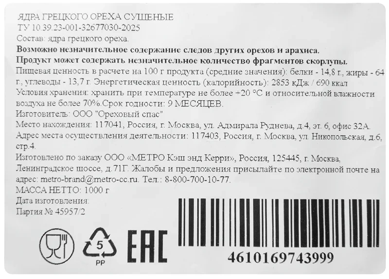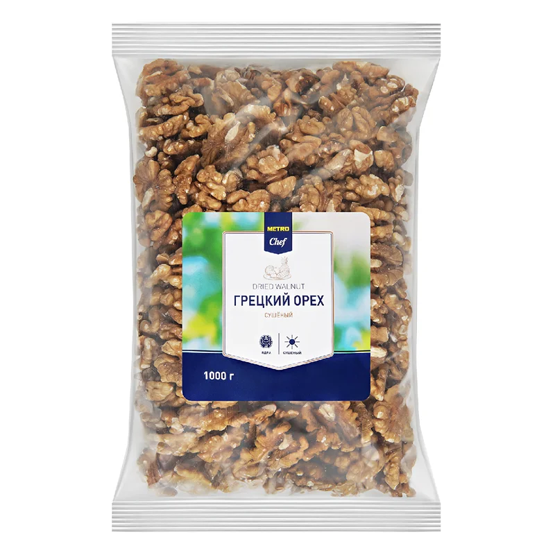 Половинки очищенного грецкого ореха можно использовать в кулинарии в том числе для приготовления халвы, конфет или есть просто так.