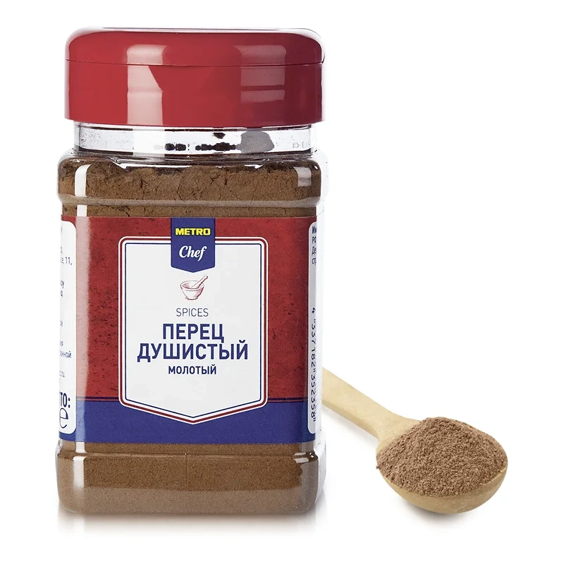Перец METRO Chef душистый молотый для кондитерских изделий, теста, мяса и рыбы - ароматная приправа, которая находит широкое применение в кулинарии. Перец в молотом виде можно добавлять в самые различные блюда - супы, рагу, блюда из дичи и рыбы. Вкус печенья, пряников, фруктовых пирогов он сделает более пикантным. Благодаря отличным дезодорирующим свойствам душистый перец используют при приготовлении маринадов всех типов. Любому блюду эта приправа придаст особый аромат.