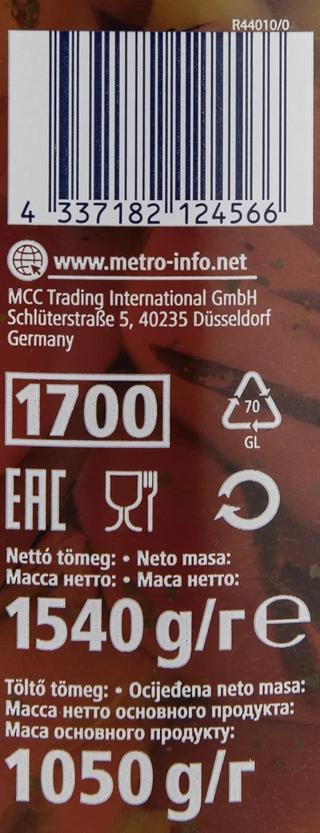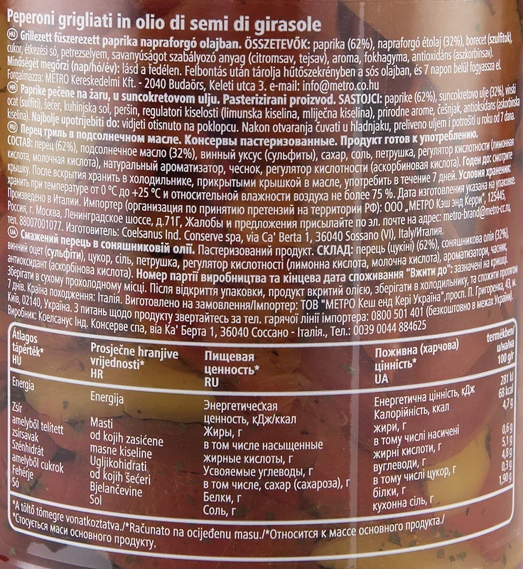 Metro Chef Перец гриль в масле, 1.6кг обладают высокими вкусовыми характеристиками и являются желанной закуской к любому столу. Обработанный особенным способом продукт сохраняет все полезные свойства в течение длительного периода времени. Консервированные перцы гриль Metro Chef идеально подойдут для приготовления изысканных блюд, легких закусок и салатов.