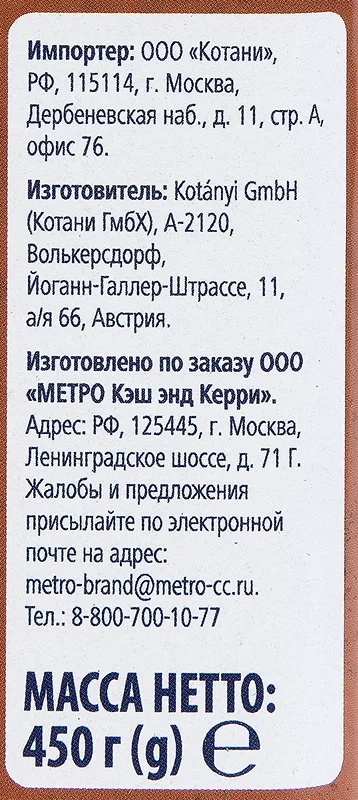 | Рекомендуемая температура хранения, C | от 0 до +25 |