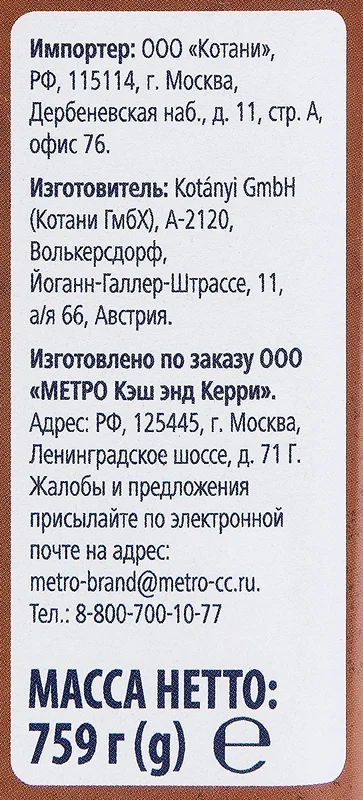 | Рекомендуемая температура хранения, C | от 0 до +25 |