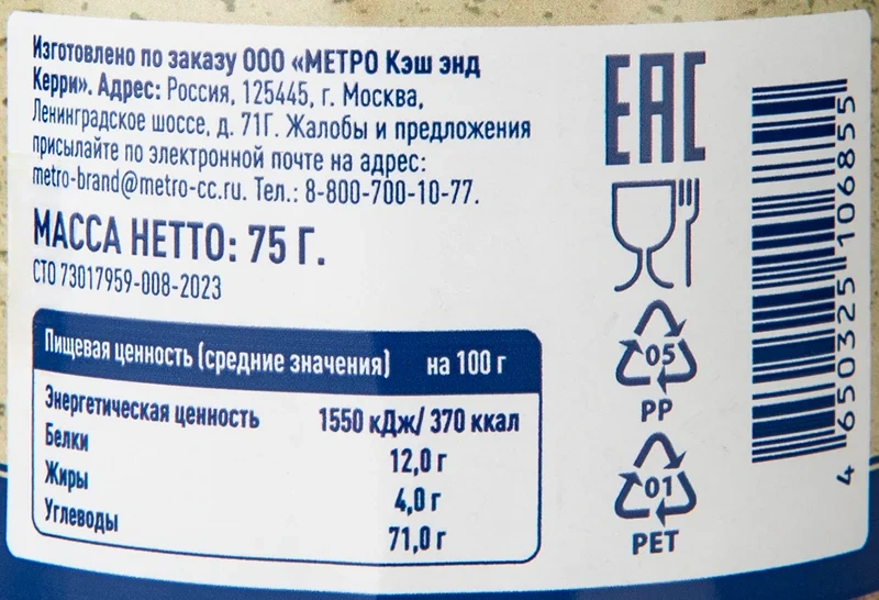 | Рекомендуемая температура хранения, C | не выше +25 |
