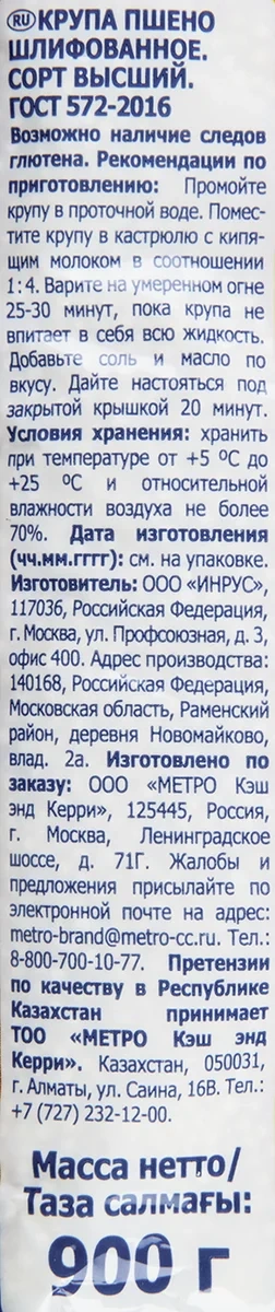 | Рекомендуемая температура хранения, C | от +5 до +25 |