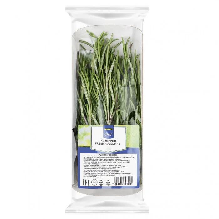 Розмарин свежий – пряная трава родом из Средиземноморья, широко использующаяся в кулинарии. Она помогает придать выразительный яркий вкус баранине и другому запеченному мясу, овощному рагу, грибам, соусам и супам.