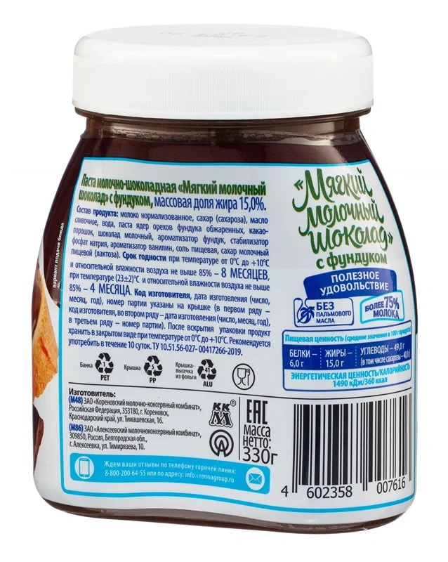Продукт помещен в объемную жестяную банку, которая обеспечивает полную герметичность, предотвращая контакт с воздухом и защищая от внешних воздействий. Емкости весом 3,7 кг позволяют приготовить большое количество кондитерских изделий.