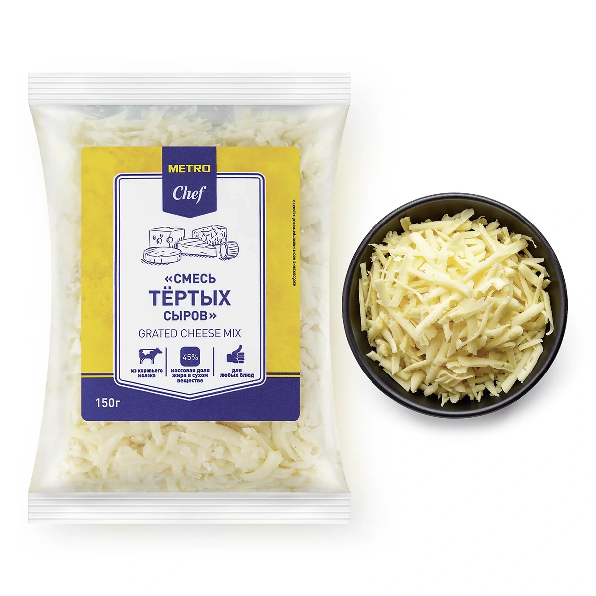 Смесь тертых сыров 45%, 150г БЗМЖ - это высококачественный продукт от известного производителя Metro Chef. Сыр в этой смеси отличается особой кремнистостью и вкусом, которые придадут вашим блюдам неповторимый аромат и вкус.