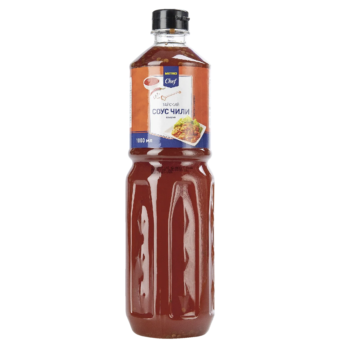 Соус Metro Chef Сладкий чили, 1000 мл хорошо дополняет мясные, рыбные, овощные и блюда азиатской кухни. Он отлично подойдет тем, кому нравятся блюда со сладкой остринкой. Для его приготовления производитель подбирает лучшие продукты, а основу для приправы составляют жгучий красный перец чили, свежий чеснок и экстракт паприки.