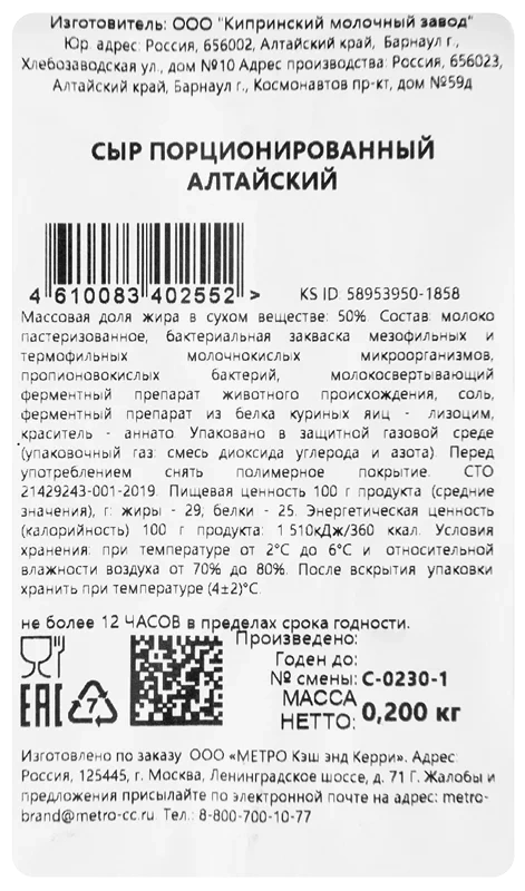 METRO Chef Сыр алтайский 50%, 200г