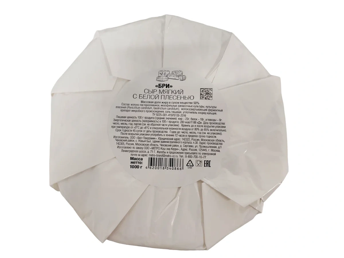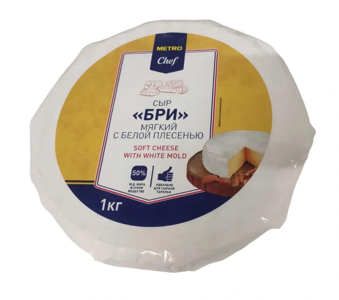 Бри – мягкий сыр с белой плесенью. Бри производится по классическому французскому рецепту. Молоко предварительно не стабилизируется, что позволяет создать именно тот продукт, который завоевал славу по всему миру. Универсальное правило для употребления мягких сыров – сыр должен согреться до комнатной температуры – это делает его мягким и раскрывает ароматику. Из холодильника сыр лучше достать за 30-40 минут до подачи. Вкус сыра прекрасно дополнят сладкие фрукты (груша, инжир, виноград), ягоды (клубника, малина, голубика, черника), также рекомендуются к подаче оливки и вяленые томаты. Отлично сочетается с мягкими красными и насыщенными белыми винами