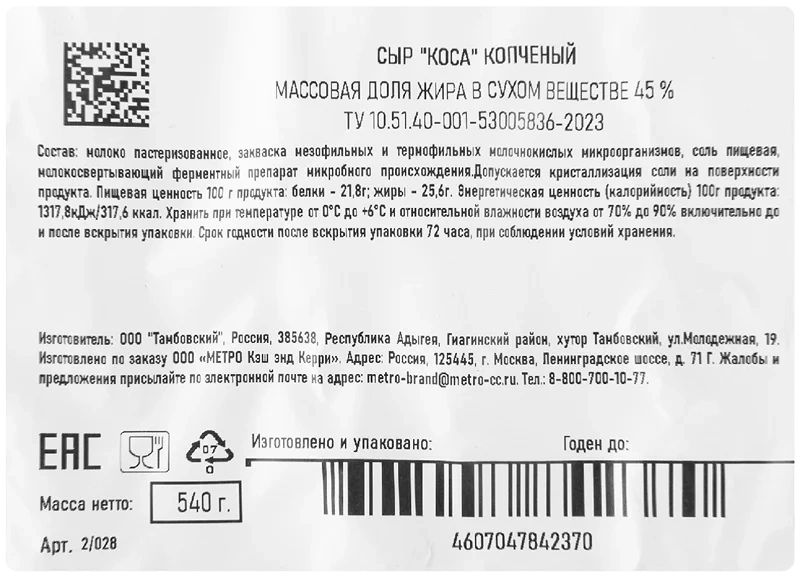 | Стандарт производства | ту 10.51.40-001-53005836-2023 |