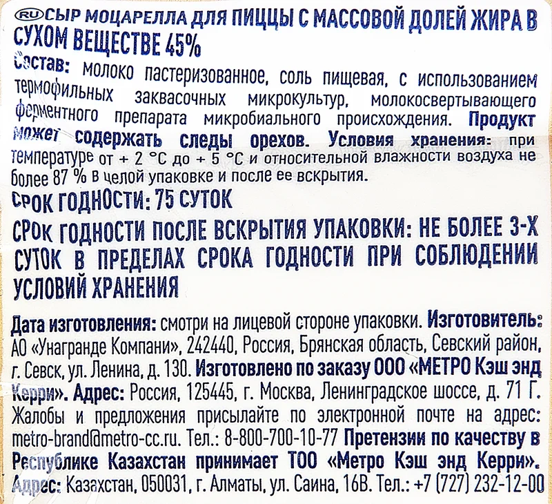 Моцарелла 45% Сыр для пиццы 1.2кг БЗМЖ – высококачественный сыр для пиццы из Италии.