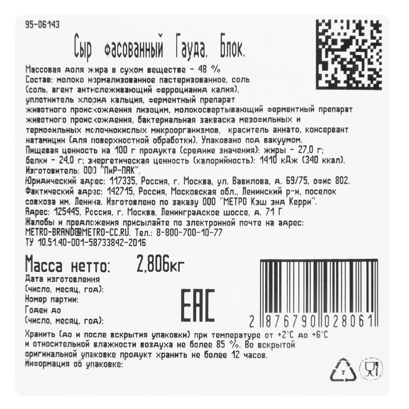 METRO Chef Сыр Гауда 48%, ~2.5кг