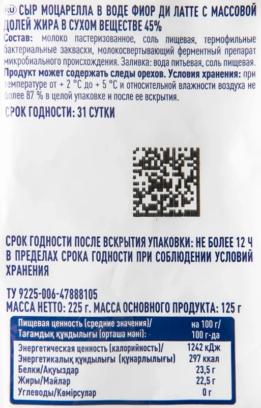 Metro Chef Сыр моцарелла Фиор ди Латте 45%, 125г - классический нежный сыр в форме шара, который содержит только три компонента: молоко, ферменты и соль. Идеально подходит для салатов. Сыр хорошо сочетается с оливками, ветчиной, черным молотым перцем, базиликом, овощами. Классическую моцареллу можно запекать в пицце и с мясными блюдами. Содержит всего три компонента: свежее молоко, живые ферменты и соль.