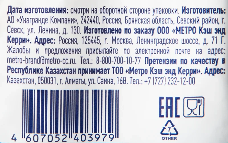 | Рекомендуемая температура хранения, C | от +2 до +5 |
