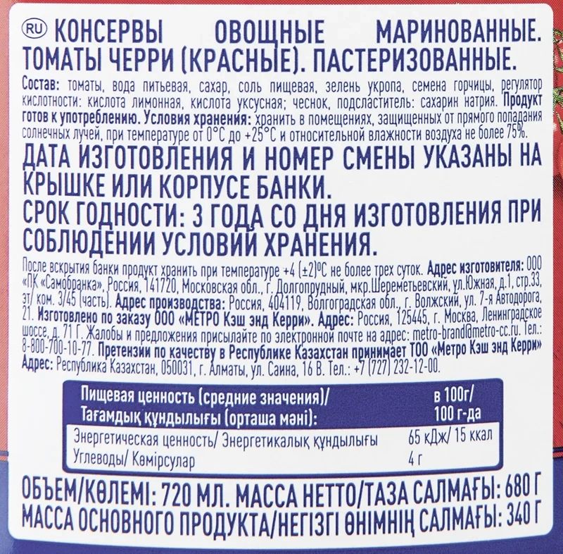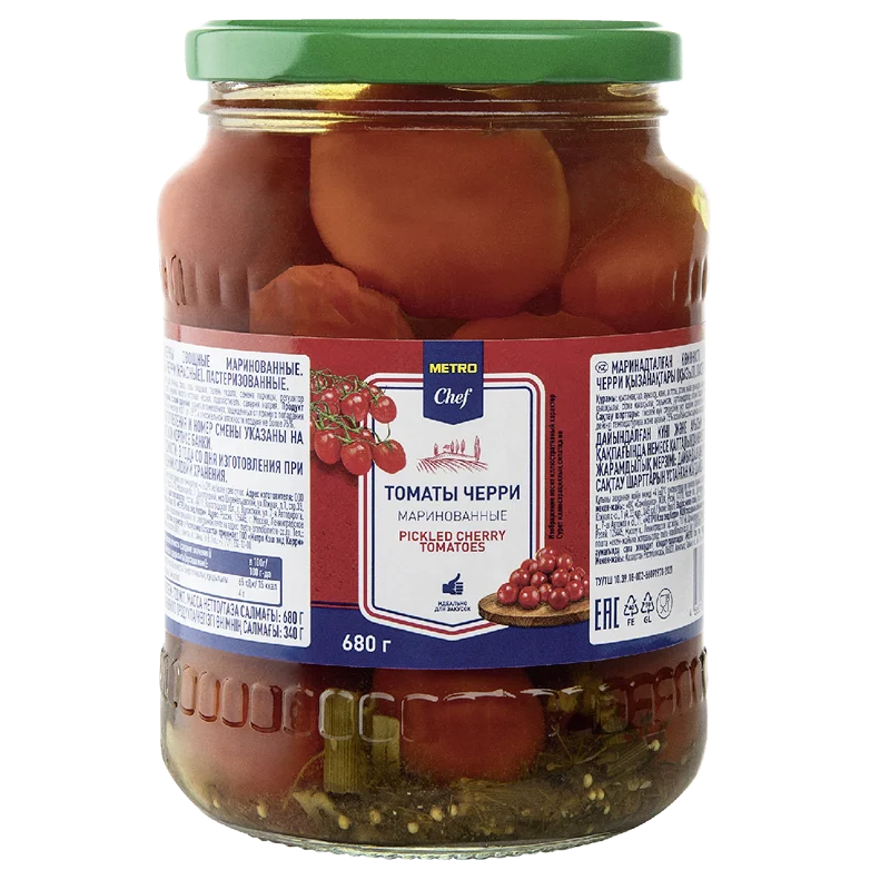 Томаты Metro Chef черри маринованные обладают оенными вкусовыми качествами. Они отличаются сочной мякотью, насыщенным вкусом и характерным ярким ароматом. Овощи богаты витаминами группы В, Н, РР, А, содержат лимонную, яблочную и винную кислоту, йод, минеральные соли, фосфор, калий, магний и другие необходимые для здоровья микро и макроэлементы. Они способствуют укреплению костной и мышечной ткани, улучшают работу органов сердечно-сосудистой системы и ускоряют обмен веществ, являются профилактикой анемии и мощным природным антиоксидантом.
