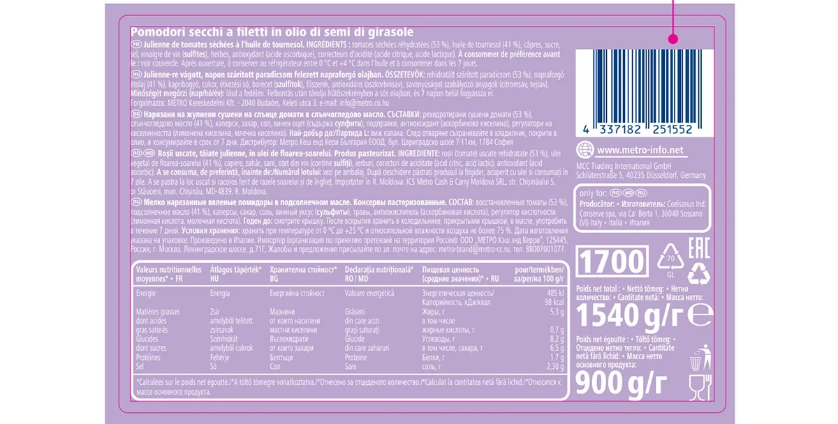 METRO Chef Томаты вяленые мелко нарезанные в подсолнечном масле, 1.54кг