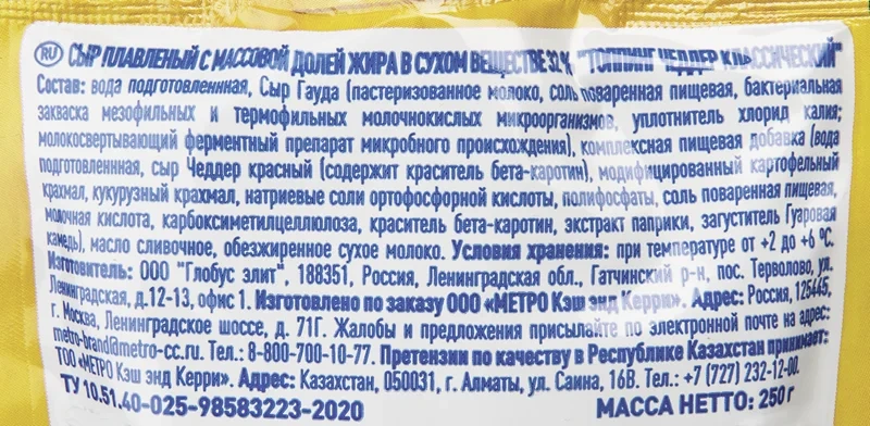 | Стандарт производства | ту 10.51.40-025-98583223-2020 |