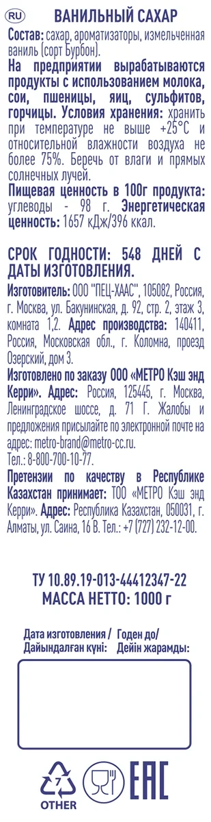 | Тип | ванильный сахар |