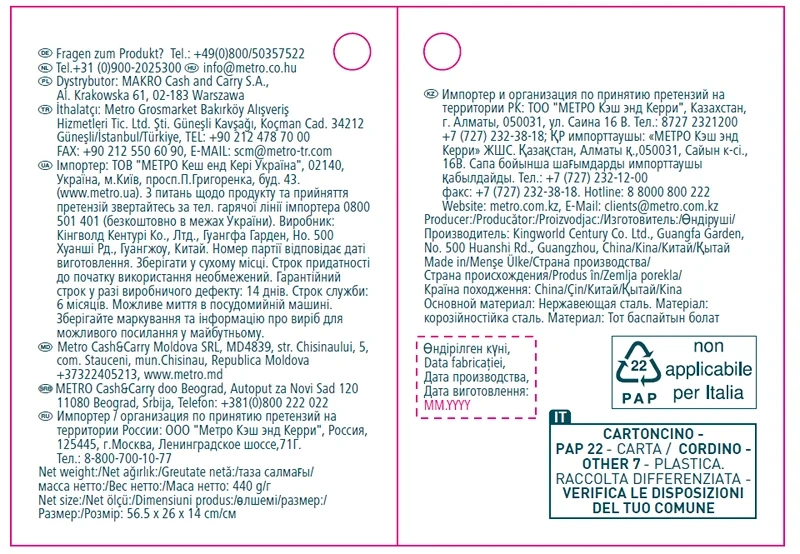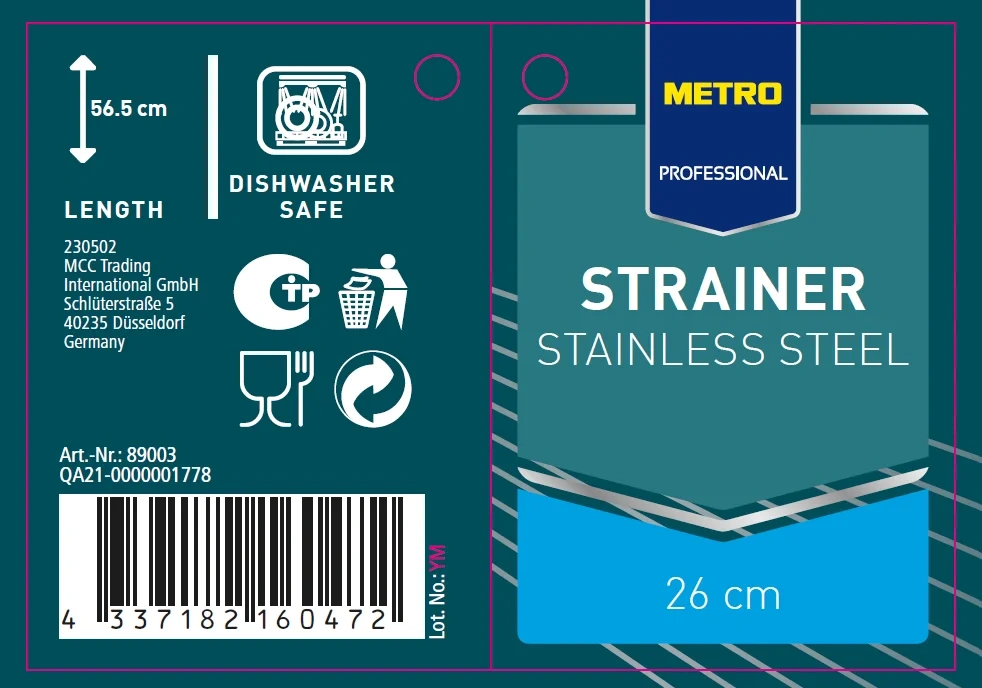 Это незаменимый на каждой кухне предмет, который пригодится в процессе приготовления различных блюд. Мелкая сетка позволяет эффективно и быстро сливать лишнюю жидкость. Держатели специально спроектированы так, чтобы дуршлаг удобно помещался на кастрюле (диаметр26 см). Длинная ручка (56,5см) предотвращает попадание горячего пара на кожу рук. Дуршлаг поможет легко процедить макароны и различные виды пасты, отварные овощи и компоты, промыть рис и фрукты. Дуршлаг изготовлен из высококачественной нержавеющей стали 18/8, которая обладает высокими антикоррозийными свойствами, не боится высоких и низких температур, окисления и царапин. Изделие можно очищать как ручным способом, используя мягкие моющие средства, так и в посудомоечной машине. После дуршлаг следует просушить.