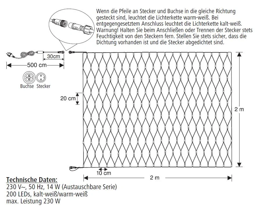 METRO PROFESSIONAL Электрогирлянда сетка 200Led теплый белый и холодный белый, 2 x 2м