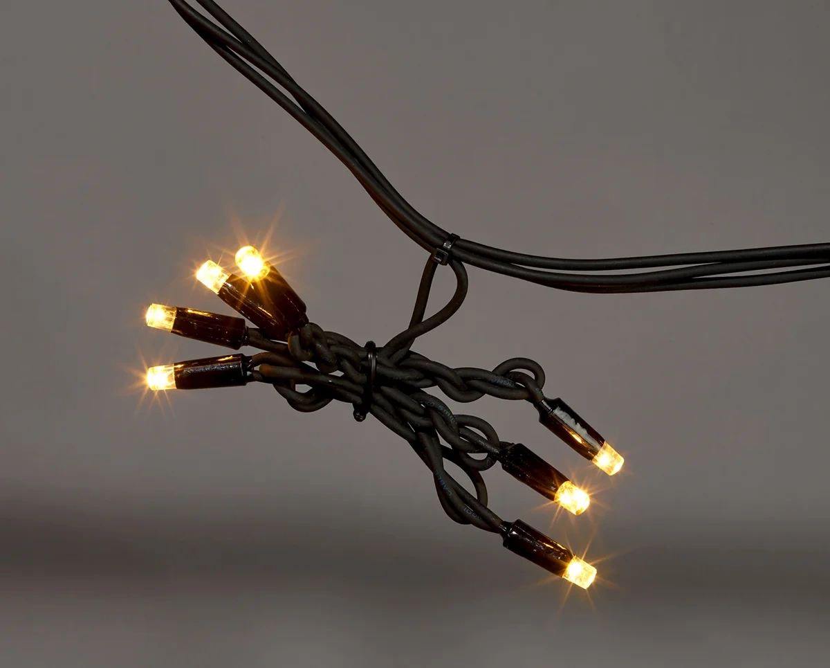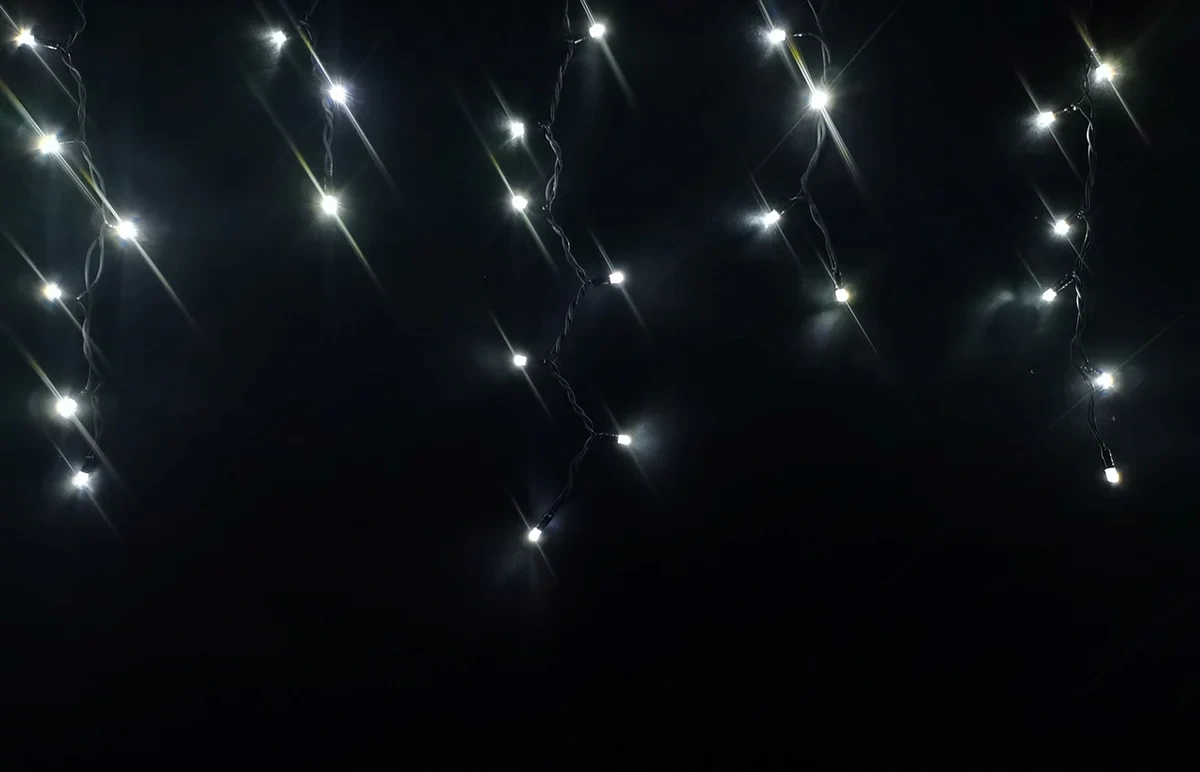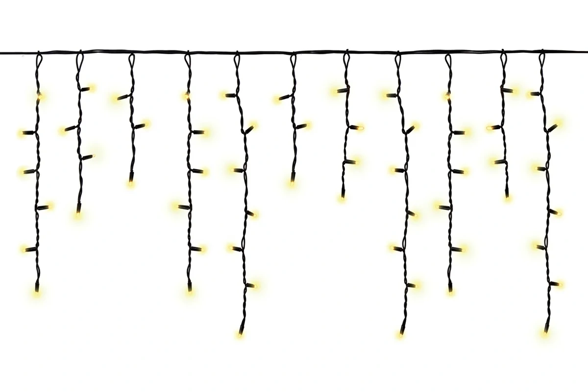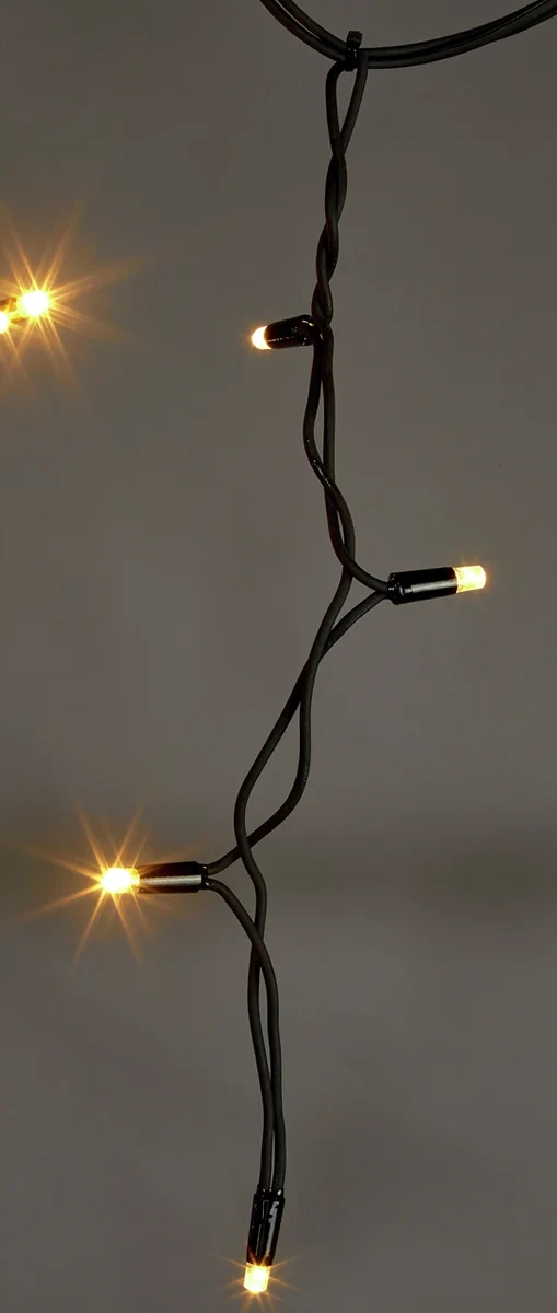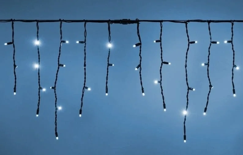 Драматичный свет для смелых решений! Черный провод делает эту гирлянду практически невидимой, оставляя только эффектные световые сосульки, струящиеся вниз. Переключение между теплым и холодным светом позволяет менять характер освещения от уютного до торжественного. Создайте на своем фасаде иллюзию волшебного ледяного дворца!