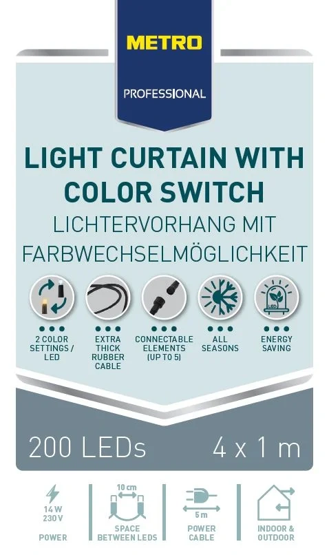 METRO PROFESSIONAL Электрогирлянда занавес 200Led теплый белый и холодный белый, 4 x 1м