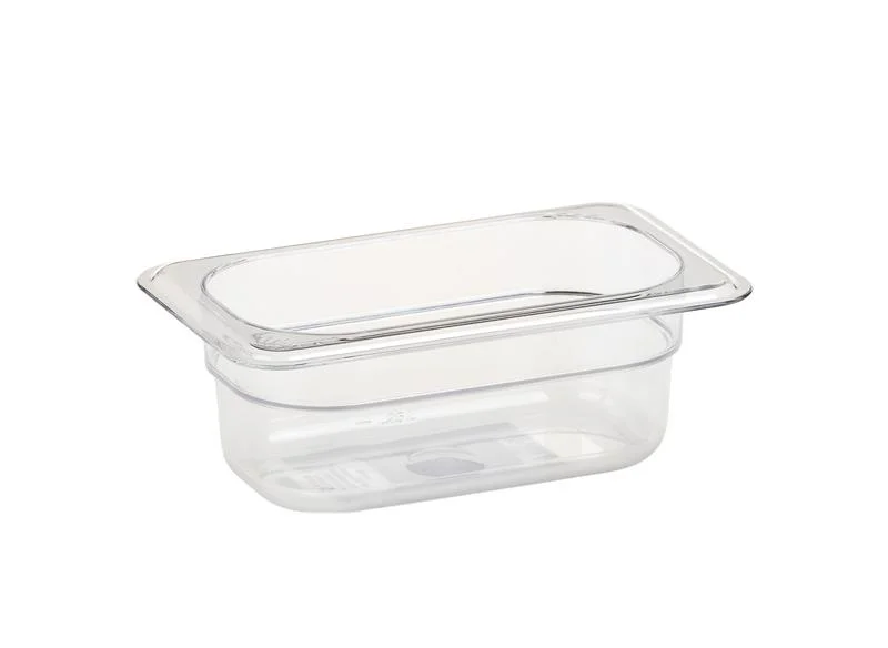 METRO PROFESSIONAL Гастроемкость GN 1/9 глубина 65мм, 0.6л отлично подходит для приготовления различных блюд и делает процесс более эффективным. Она разработана для профессионального использования. Размеры и небольшой вес гастроемкости позволяют использовать ее и в качестве подноса. Поставьте на нее посуду с горячим или холодным блюдом, бокалы, тарелки и многое другое. Они не соскользнут, благодаря высоким бортикам. Материал выбран не случайно. Он не впитывает запахи, легко моется, не царапается и на долгое время сохраняет свой привлекательный внешний вид. Он быстро прогревается, а потому на приготовление блюда уйдет меньше времени. При этом она не пригорает, но для продления срока службы рекомендуется использовать бумагу для выпечки, фольгу и другие средства, облегчающие готовку.