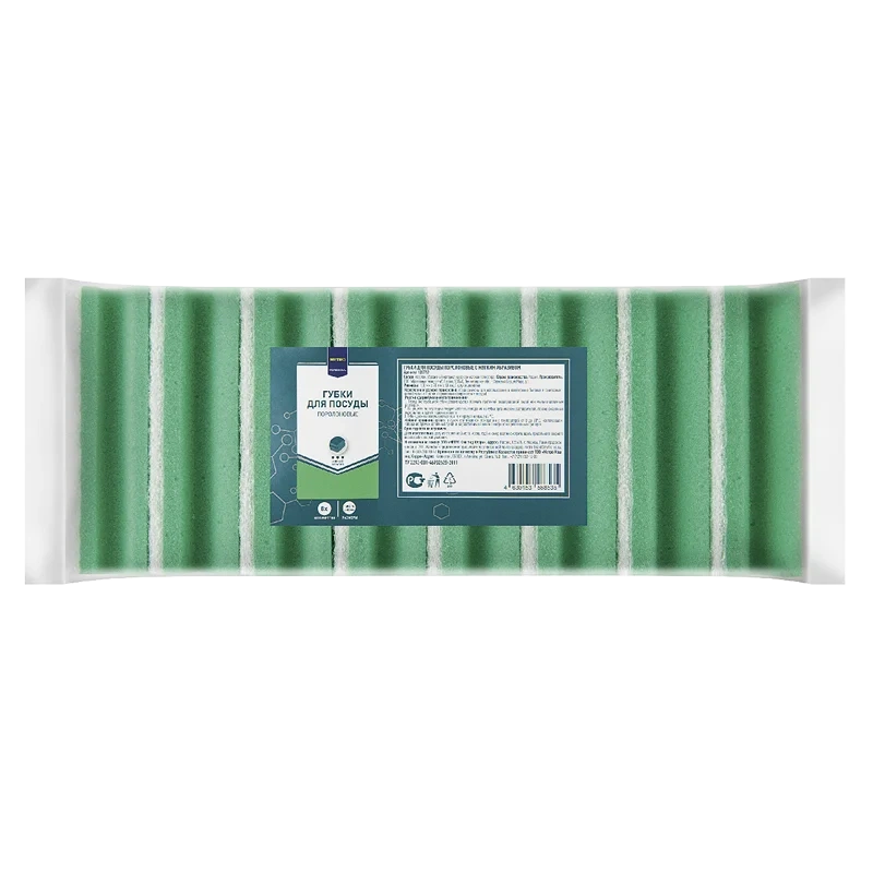 METRO PROFESSIONAL Губка для посуды фрезерованные с мягкой абразивностью, 8 шт. имеет удобную форму, поэтому ее просто удерживать в руке даже в мокром виде и в намыленном состоянии. Она предназначена для использования в хозяйственно-бытовых и санитарных целях, так как способна эффективно очищать загрязненные поверхности и посуду. Она изготовлена из материала, в который хорошо проникает моющее средство и равномерно распределяется по поверхности, быстро вспениваясь. На верхней стороне губки установлен слой абразивного материала, который способен быстро очищать сильно загрязненные поверхности.