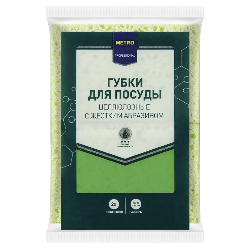 Губка для мытья посуды Metro Professional 9.6x6.4см, целлюлозная, 2шт/уп