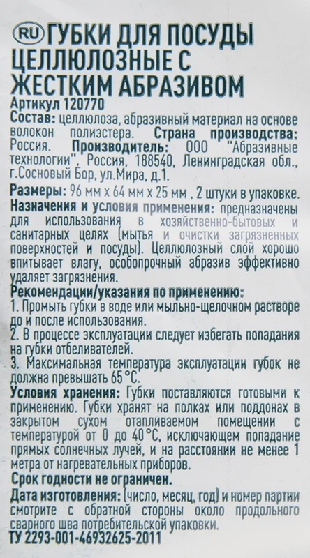 METRO PROFESSIONAL Губки для посуды целлюлозные с жесткой абразивностью придадут блеск кухонной утвари и качественно очистят ее от загрязнений. При этом после себя губка не оставит царапин и потертостей. Изделия выполнены из высокоизносостойкого материала, поэтому одной губки хватает на длительную эксплуатацию. Эргономичная форма и удобная текстура губки обеспечивают комфорт при мойке. Вам ??е придется прикладывать максимум усилий, чтобы добраться до труднодоступных мест, таких как ручки на сковородах и кастрюлях. Губки легко моются и быстро сохнут, предотвращая размножение бактерий. Это надежный помощник на каждой кухне, который сделает процесс ухода за посудой максимально приятным и эффективным. В наборе поставляется 5 практичных губок размером 9.6 x 6.4 x 3.7 см.