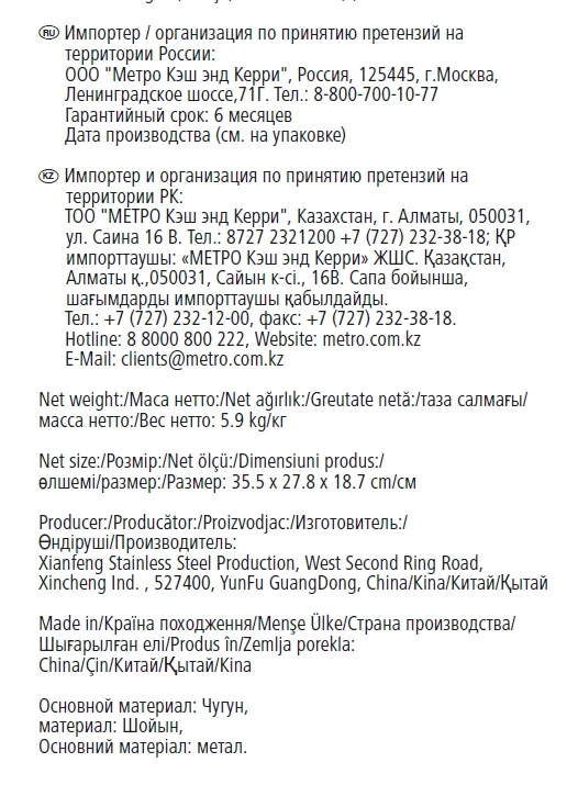 | Комплектация | кастрюля с крышкой - 1 шт. |