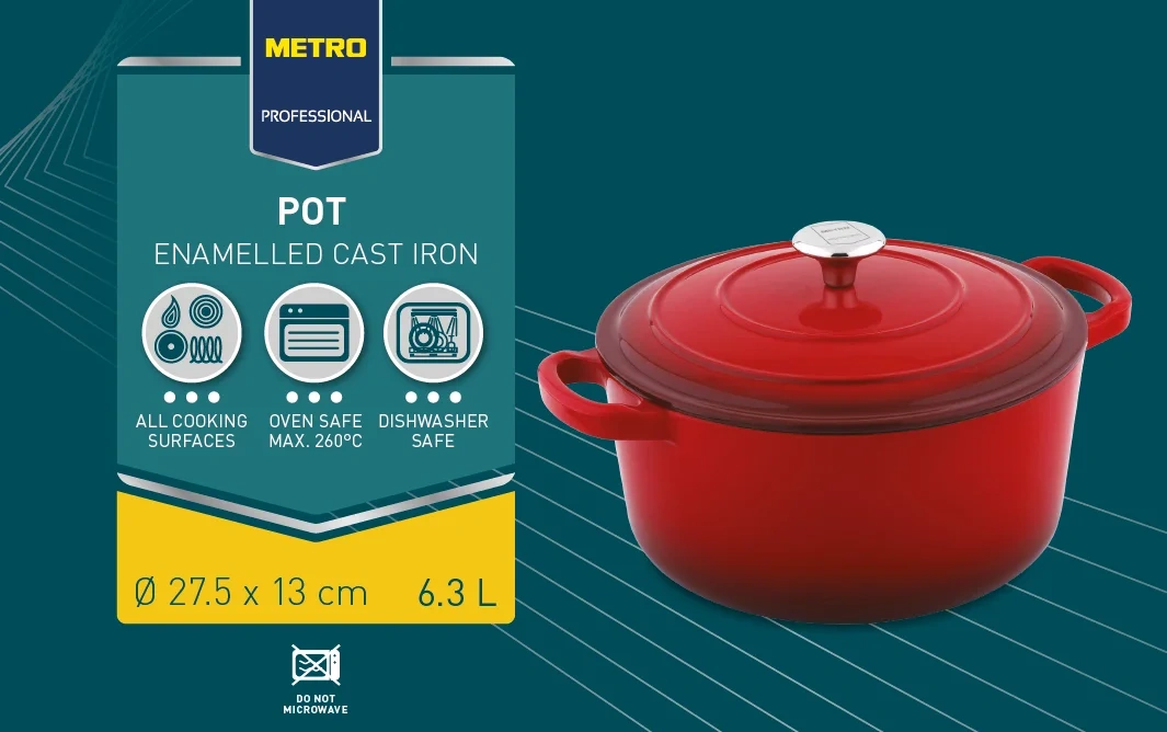 METRO PROFESSIONAL Кастрюля с крышкой эмалированный чугун 6.3л, 27.5 x 13см